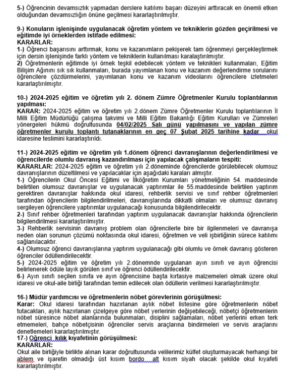 03/02/2025 Öğretmenler Kurulu toplantısı ve Okul Aile Birliği görüşmeleri sonucunda, okul kıyafetlerinde herhangi bir değişikliğe gidilmemesi yönünde karar alınmıştır.